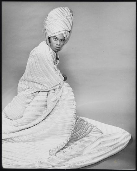 [Melba Moore as Marsinah and Gilbert Price as The Mansa of Mali in "Timbuktu!".]