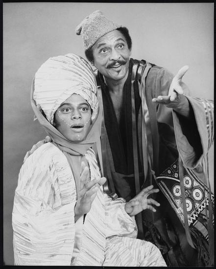 [Eartha Kitt as Shaleem-La-Lume and William Marshall as Hadji in "Timbuktu!".]