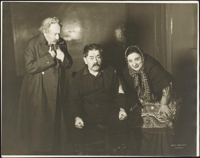 [Jacob Ben-Ami, Menachem Rubin and unidentified actor in Dovid Bergelson's "We Will Live".]