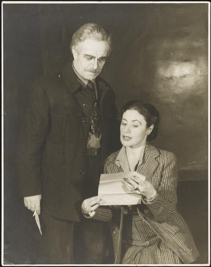 [Berta Gersten and Jacob Ben-Ami in Dovid Bergelson's "We Will Live".]