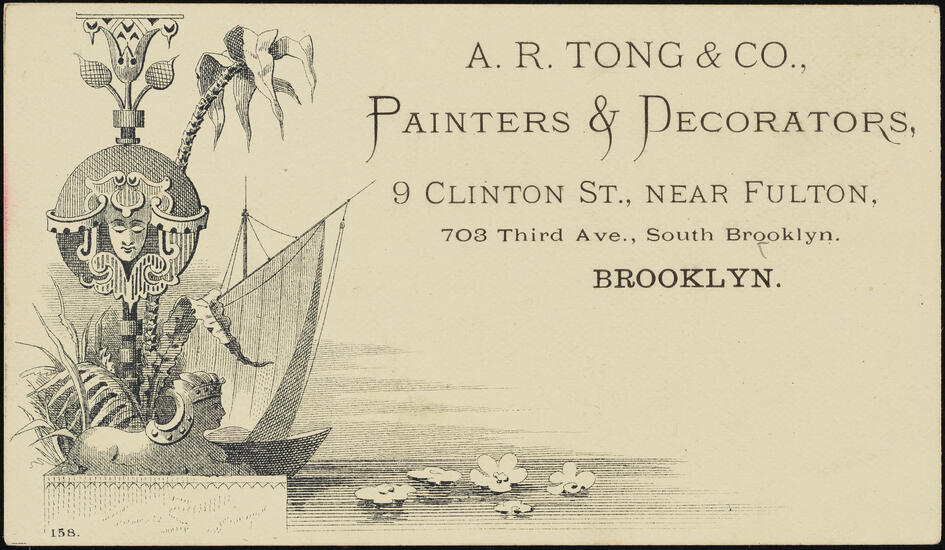 Description Painters & decorators, 9 Clinton Street, near Fulton, and 703 Third Avenue, South Brooklyn, Brooklyn.
