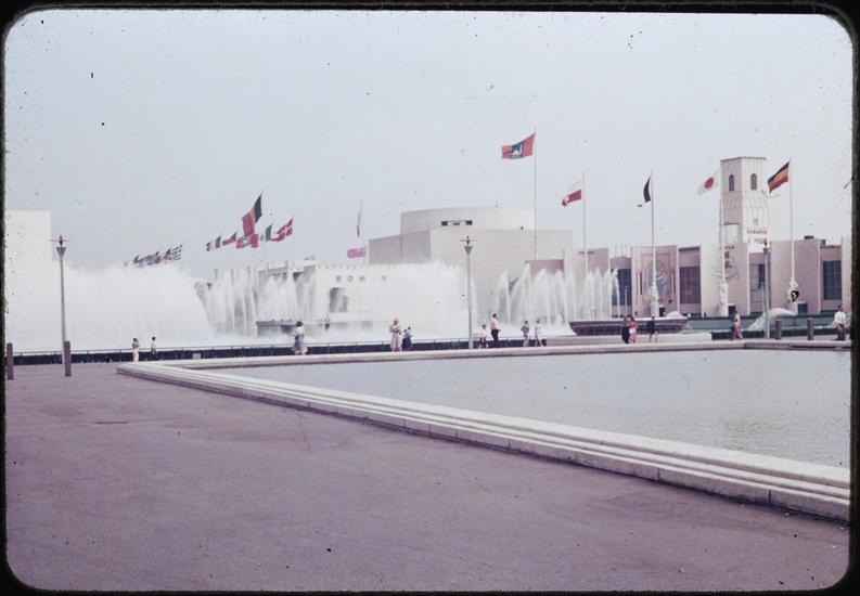 [The Italian and British Pavilions across the Lagoon of Nations.]