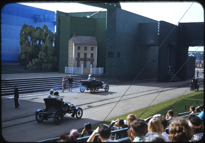 [Trolley during the Parade of Railroads show.]
