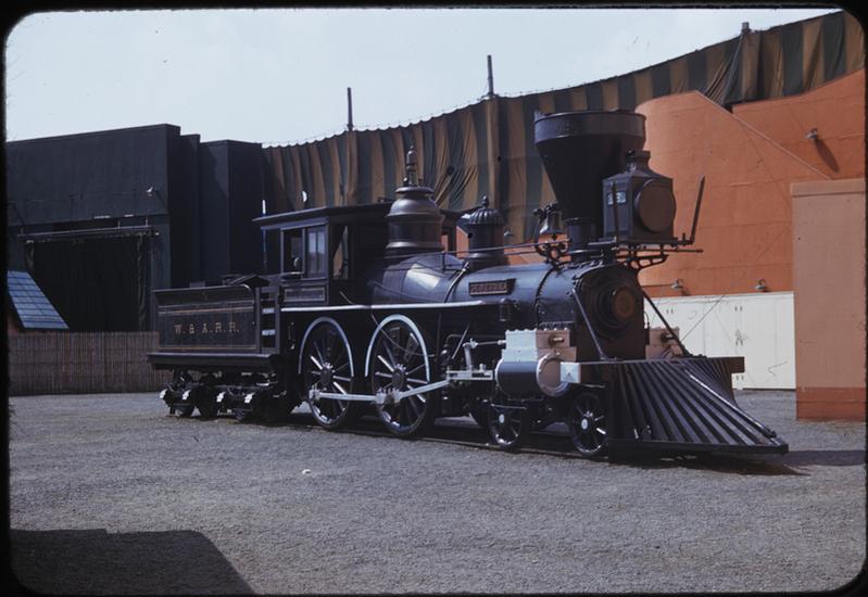 [Actors with a replica of the Jupiter locomotive during the Parade of Railroads show.]