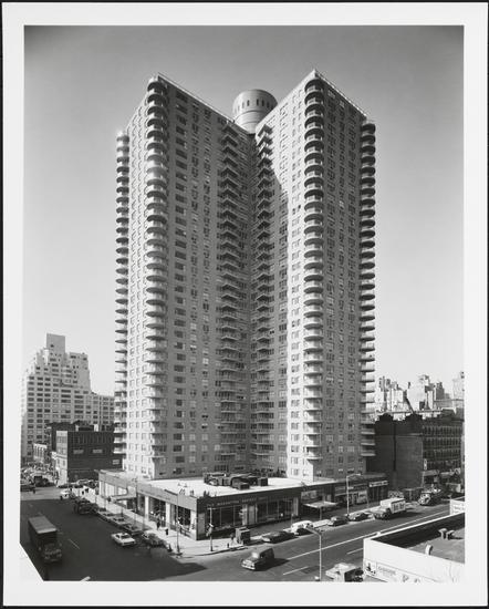East 86th Street and Third Avenue, southwest corner. Apartment building with Manhattan Savings Bank on ground floor. Street view