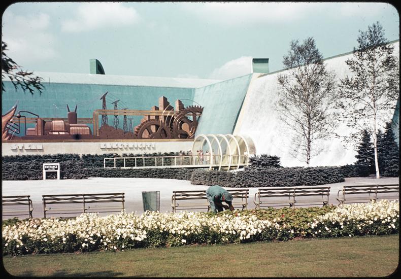 [View from the Perisphere toward the Production & Distribution Zone.]