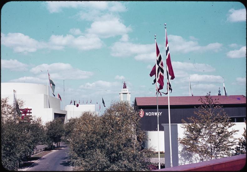 [British and Italian Pavilions showing the Lagoon of Nations.]