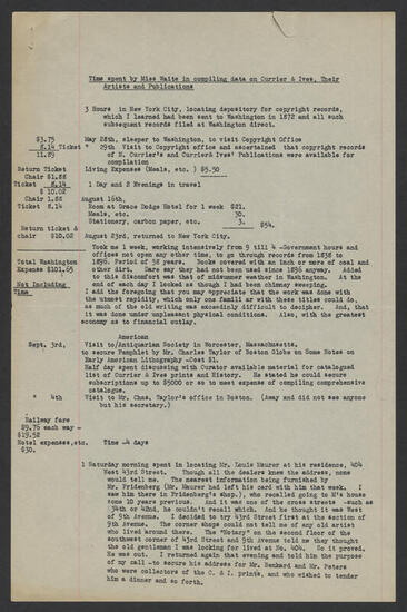 Research by Harriet Endicott Waite on Currier & Ives, submitted to Harry T. Peters, March 2, 1926 - July 27, 1927