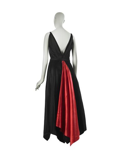 Evening dress in black and cerise satin