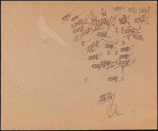 Zephyr [Loose notebook page in Zephyr's sketch pad.]