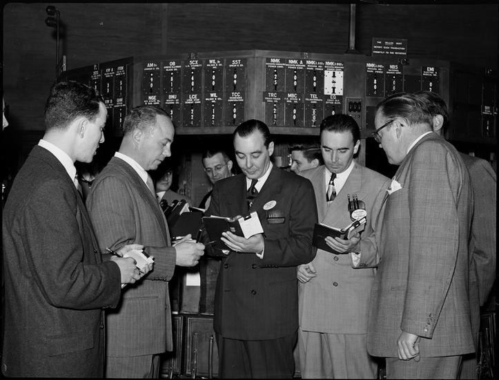 Stock Exchange [Stockbrokers on the floor of the stock exchange.]