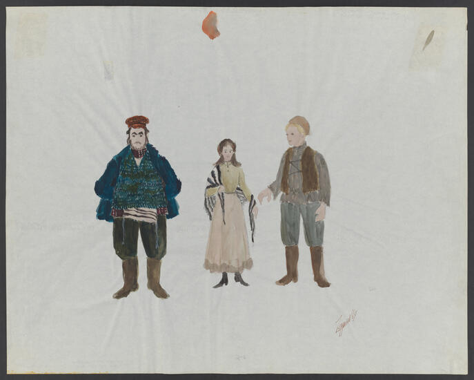 Summer, Act I - "Tevye" [Costume designs for three vendors or tradesmen for "Fiddler on the Roof".]