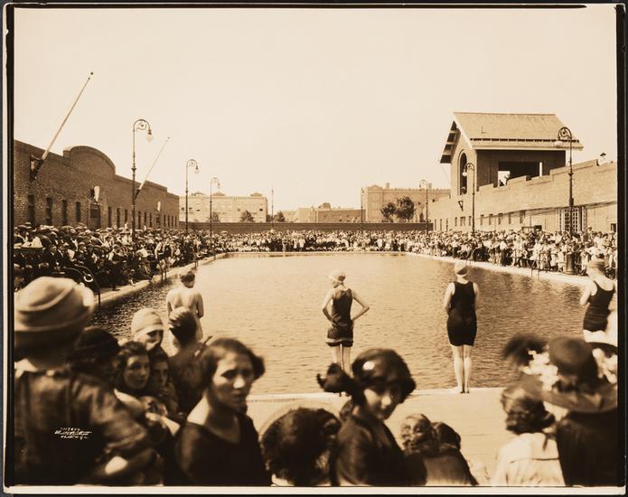 [People at a swimming pool.]