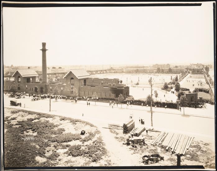 New York Worlds Fair. Bird's-eye view of Perisphere under construction