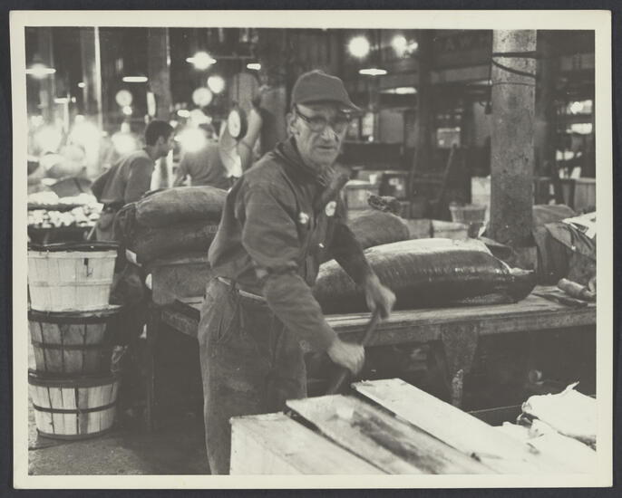 Fishdealers' Horseplay. [Fish sellers outside of the Fulton Fish Market.]