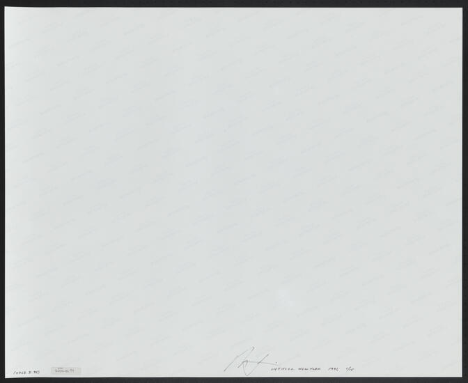 Dark blue satin curtain in middle, view through window at left, pile of fake snow on right, light reflection on right. Artist's description: dark blue curtain.