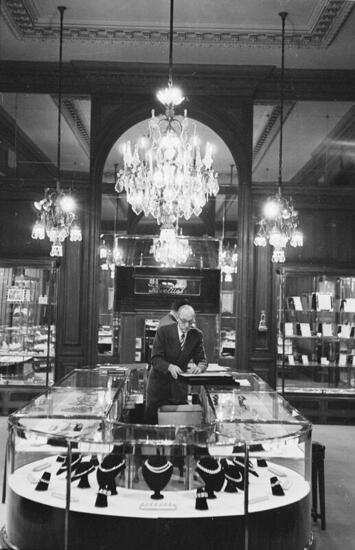 New York Streets--Fifth Avenue [Children playing at FAO Schwarz.]