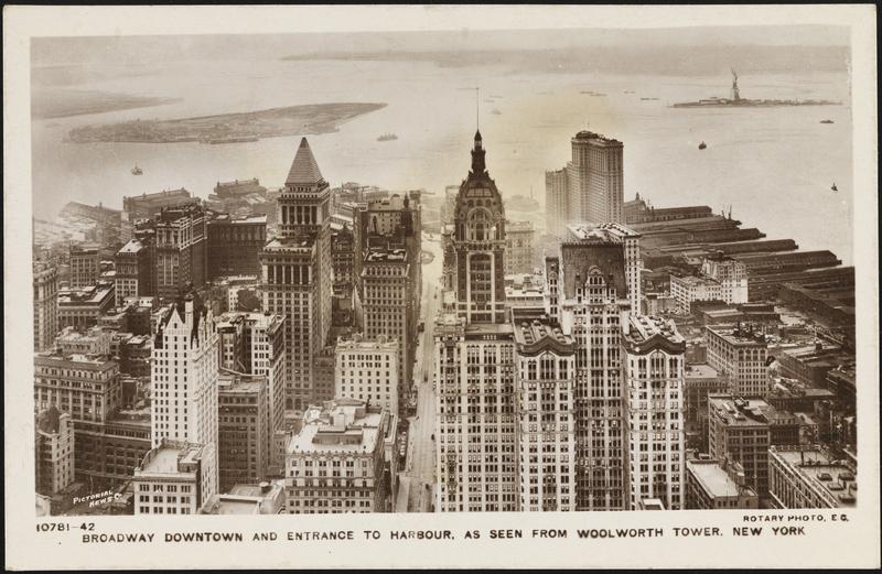 Broadway Downtown and Entrance to Harbour as Seen from Woolworth Building, New York