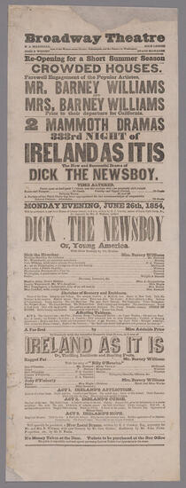 "Dick the Newsboy; or, Young America", Monday evening, October 17, 1853