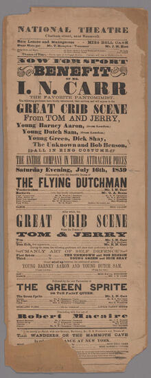 Saturday evening, May 16, 1857, the performance will commence with the first act of the drama of "Robert Macaire"
