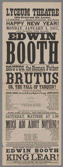 Friday evening, November 16, 1877, will be presented Shakespeare's tragedy in five acts, "King Richard III; or, The Battle of Bosworth Field"
