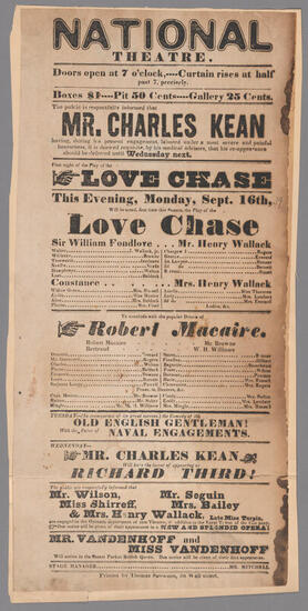 Monday evening, September 23, 1839, will be acted Shakespeare's play of "Richard III"