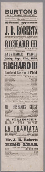 Friday evening, November 16, 1877, will be presented Shakespeare's tragedy in five acts, "King Richard III; or, The Battle of Bosworth Field"