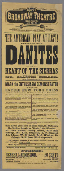 Mr. McKee Rankin and Miss Kitty Blanchard in their beautiful and charmingly pure American drama of "The Danites" by Joaquin Miller, the poet of the Sierras