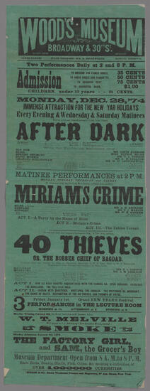 Monday, September 14, 1874, every evening at 8, Wednesday and Saturday matinees at 2, a play in five acts by Augustin Daly, “Under the Gaslight”
