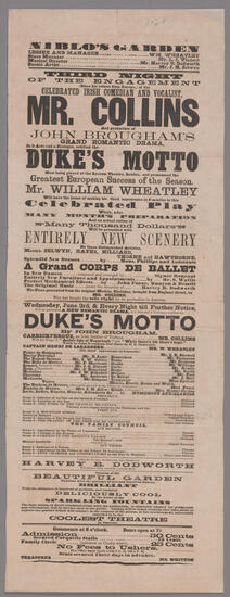 Mr. Charles Fechter and Miss Carlotta Leclercq will appear in the grand romantic play, translated and adapted from Paul Feval's drama of "Le Bossu", by John Brougham, entitled "The Duke's Motto"
