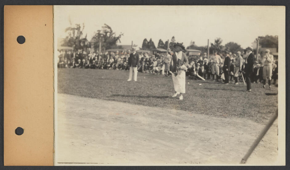MORSE DRY DOCK & REPAIR CO. PHOTOGRAPHS [A WOMAN THROWING A BASEBALL AT A FIELD DAY.]