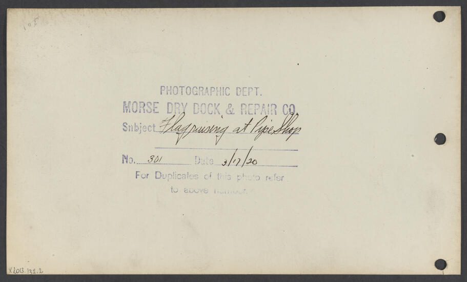 MORSE DRY DOCK & REPAIR CO. PHOTOGRAPHS [FLAG RAISING AT PIPE SHOP.]