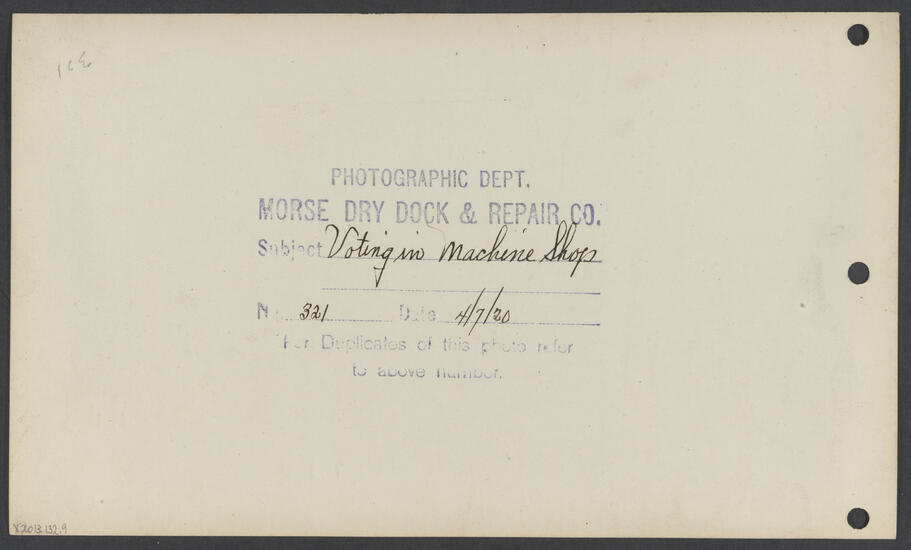 MORSE DRY DOCK & REPAIR CO. PHOTOGRAPHS [VOTING IN THE MACHINE SHOP.]