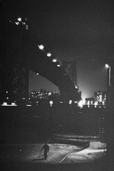 Photographs of people and places in Brooklyn associated with the four teenage boys known as the Brooklyn Thrill Killers. Depicts a grocer, a women working at a soda shop, a dry cleaner, a couple on a bench, a man on the beach under the Manhattan Bridge, a woman in an apartment, and teenagers walking down a street.