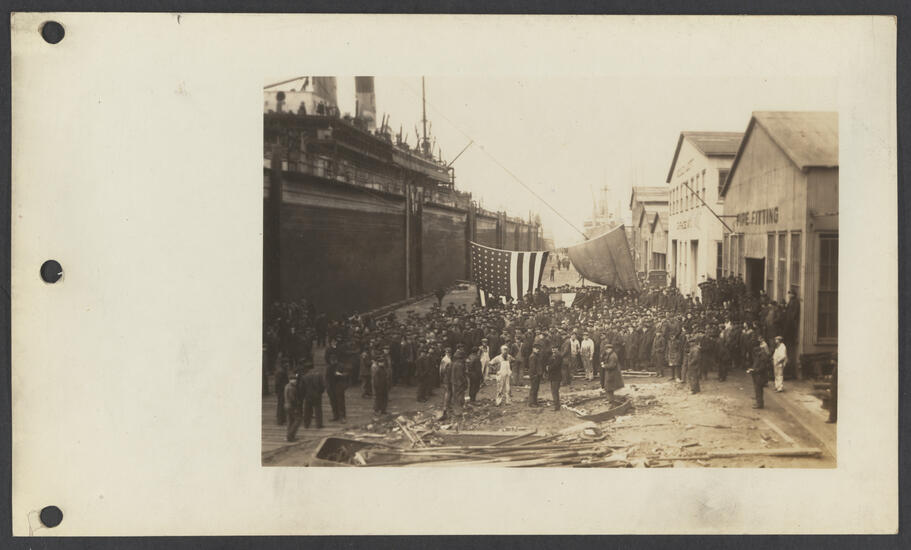 MORSE DRY DOCK & REPAIR CO. PHOTOGRAPHS [FLAG RAISING AT PIPE SHOP.]