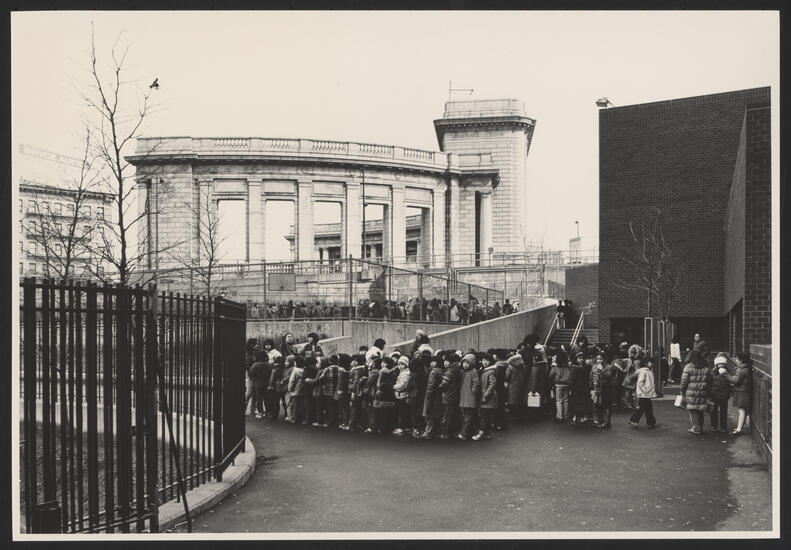 FEBRUARY 17, 1981, P.S. 124 CHILDREN AT CONFUCIOUS PLAZA & BOWERY [ENTRANCE TO MANHATTAN BRIDGE AT CANAL ST.]