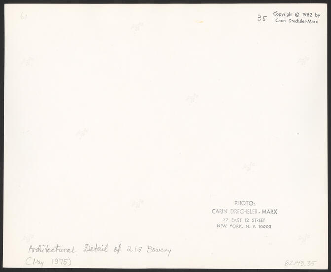 ARCHITECTURAL DETAIL OF 219 BOWERY (MAY 1975)