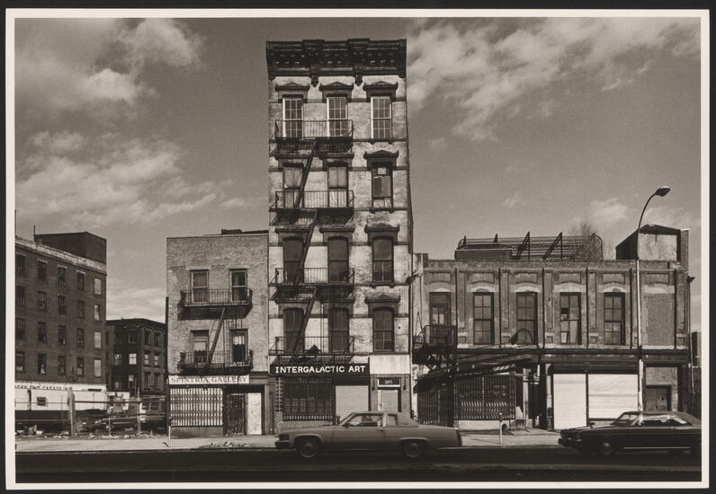 DETAIL OF 295 BOWERY (HOME OF WRITER-ARTIST KATE MILLLETT & SCULPTOR MICHAEL BAKATY). [OCT. 1975]