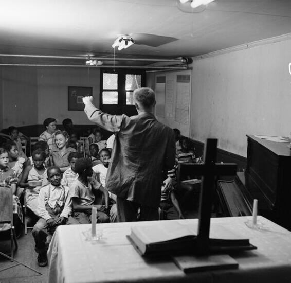 Photographs of Puerto Rican families in the city. Depicts children in an art class; a block party; a group of young men sitting on the sidewalk playing guitar; church services; people gathered for a wedding; children playing in fire hydrant water, streets, swimming pools, and alleys; grocers and street vendors selling food; and families in their homes. Also depicts a family de-boarding an airplane, waiting to collect their luggage, and getting in a taxicab at the airport.