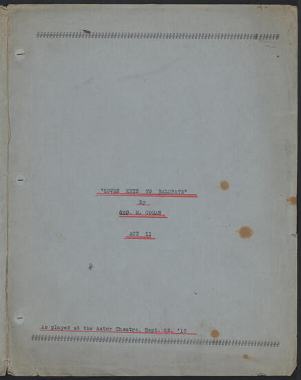 "Seven Keys to Baldpate" - A Mystery Farce in Two Acts With Prologue and Epilogue