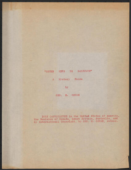 "Seven Keys to Baldpate" - A Mystery Farce in Two Acts With Prologue and Epilogue
