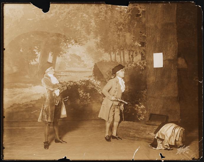 [George Giddens as Bob Acres and Annie Russell as Lydia Languish in "The Rivals".]