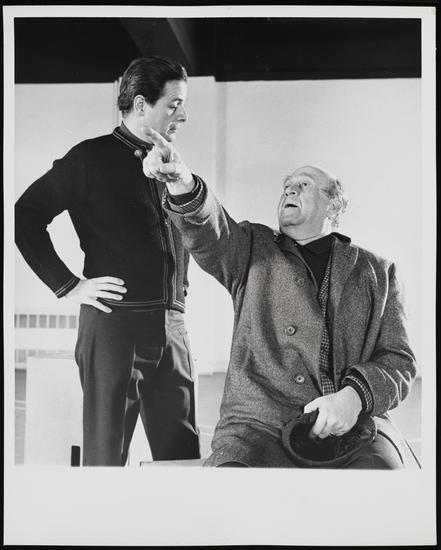 [Choreographer Rhoda Levine with actors Ron Holgate, Howard Da Silva and William Daniels at a rehearsal for "1776".]