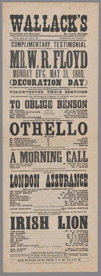 Thursday afternoon, May 4, 1876, farewell benefit of Mr. George Rignold