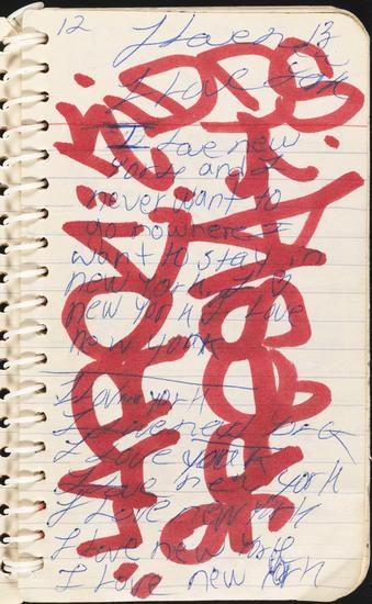 [INSIDE FRONT COVER AND FIRST PAGE OF KEITH HARING'S BOOK.]