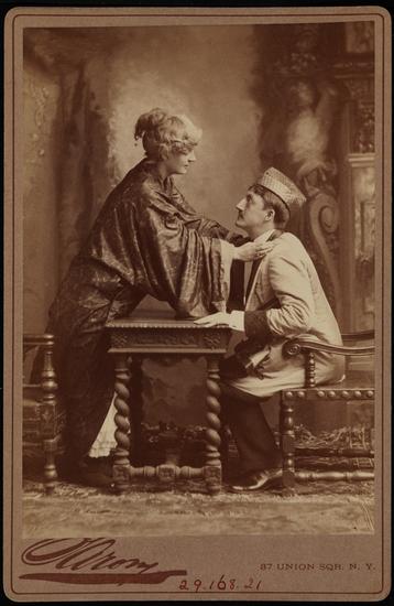 [John Drew as Jack Mulberry and Ada Rehan as Nisbe in "A Night Off".]