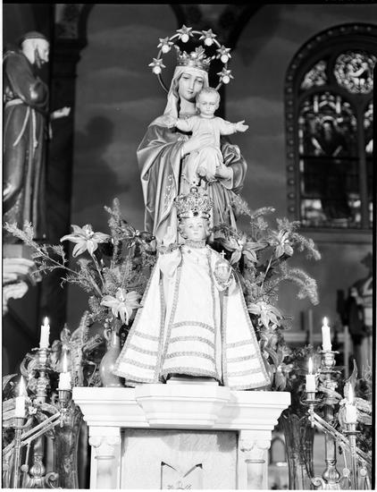 [Statue of Jesus Christ, covered with money, being carried in a religious procession.]