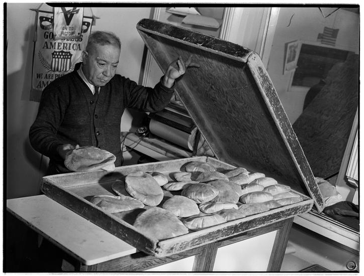 [Man baking bread.]