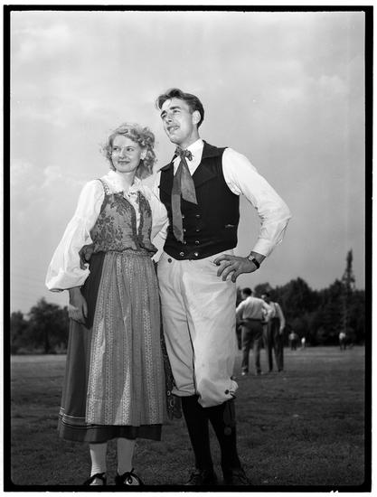 [Couples folk dancing.]