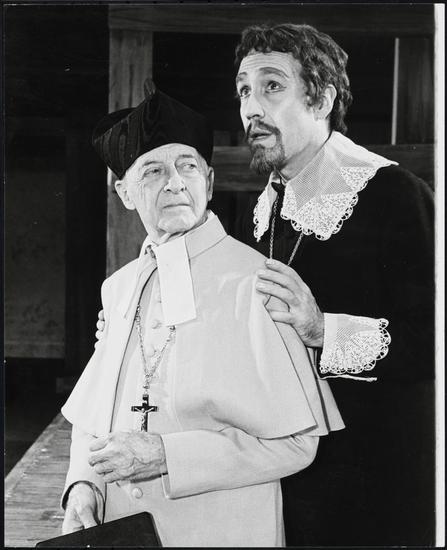 [Shepperd Strudwick as De La Rochepozay and Jason Robards as Urbain Grandier in "The Devils".]